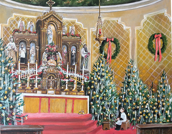 Bill Tierney is a gifted artist who hand painted each of the illustrations. He has dedicated his life to maintaining the Assumption church.